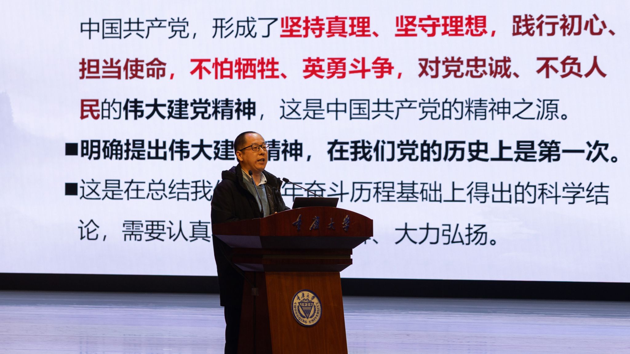 蒋楼立足理论根基,系统梳理了中国共产党伟大建党精神的理论渊源,深入阐释其丰富内涵、内在逻辑与精神实质,带领师生回溯党的精神源头,号召师生弘扬光荣传统、赓续红色血脉,把伟大建党精神继承下去、发扬光大!
