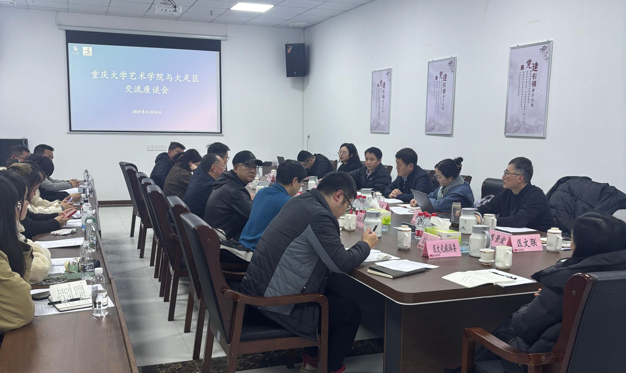 下午,在大足党政办公中心召开艺术小镇建设交流会,三驱镇党委书记唐陈介绍了三驱镇域发展概况、高新区(文创园)建设进展,重点汇报了大足石刻文创园立足大足深厚文脉与产业特色、以“艺术+产业+乡村”融合发展为路径的建设实施方案。方案紧扣“文艺赋美乡村”工作要求,通过推动文艺发展与产业发展、乡村治理深度融合,充分发挥文艺在乡村振兴中的美育功能和带动作用,让艺术创造融入乡村建设,切实提升农民获得感与幸福感,致力于将大足石刻文创园打造成为成渝地区双城经济圈“文艺赋能乡村振兴”的示范高地。大足政协副主任罗道书等领导也分别做了发言。